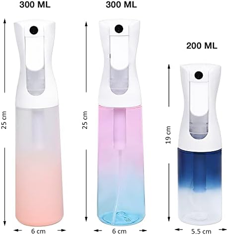 ❥【Multifunctional】Continuous spray bottles can be used for hairstyling, facial skin care, gardening, cleaning, ironing, spraying essential oils and more. It is also very portable for travel. Set includes: 2 x 300ml, 1 x 200ml.