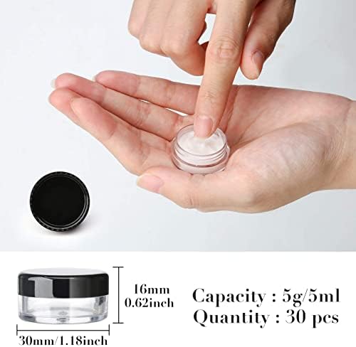 30 Pcs Empty Sample Pots 5g / 5ml Plastic Travel Cosmetic Container Jars with Lids for Creams, Sample, Make-Up Storage (Black)