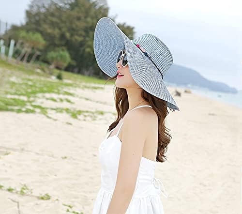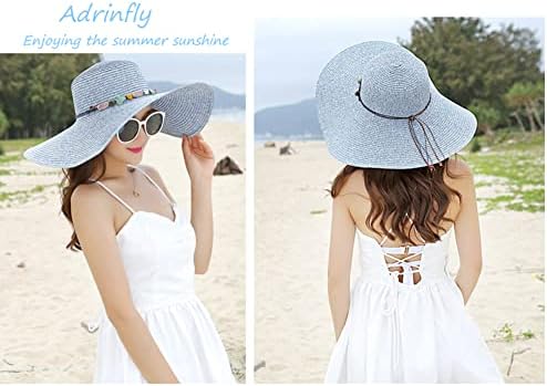 Adrinfly Women Foldable Floppy Wide Brim Straw Sun Hat Travel Packable Adjustable Summer Beach Accessories Hat UV UPF 50+