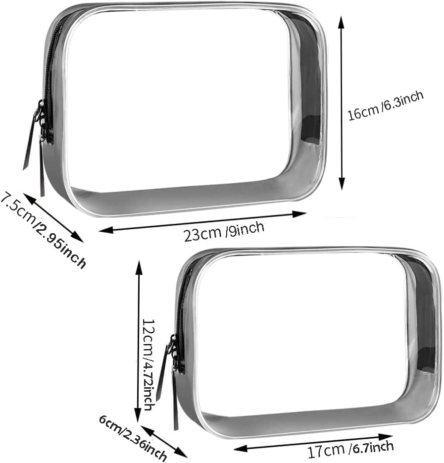 Clear Travel Toiletry Bag, 2 Pack Portable PVC Makeup Bags Transparent with Zippers Wash Bags Organizer Cosmetic Pouch for Men Women (9×6.3in + 6.7×4.7in)