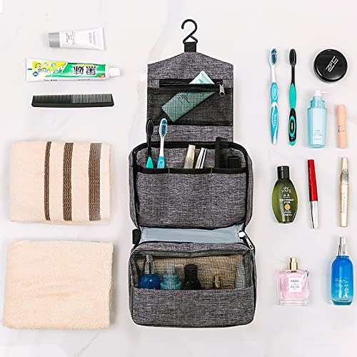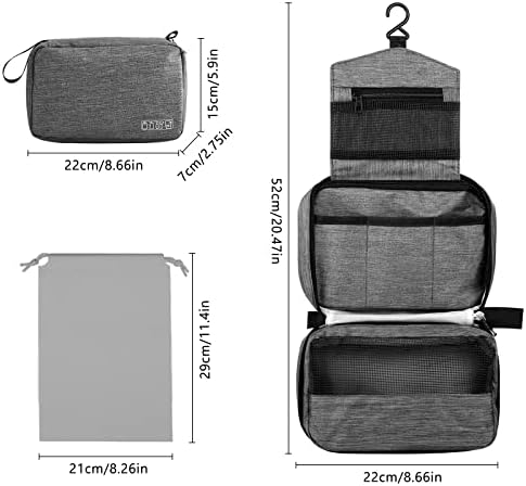 Cooja Wash Bag Hanging Toiletry Bag Women, Travel Washbag with Hook & Handle, 1 Toilet Bag + 2 Drawstring Bag, Grey