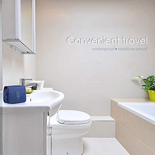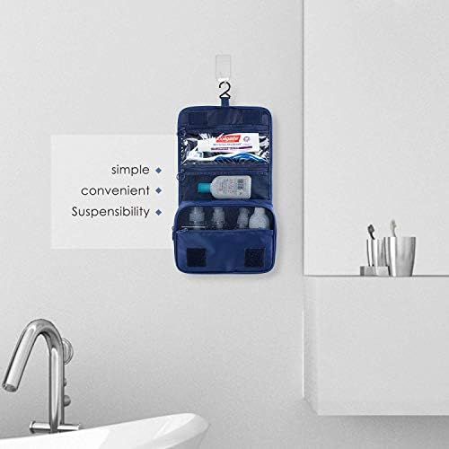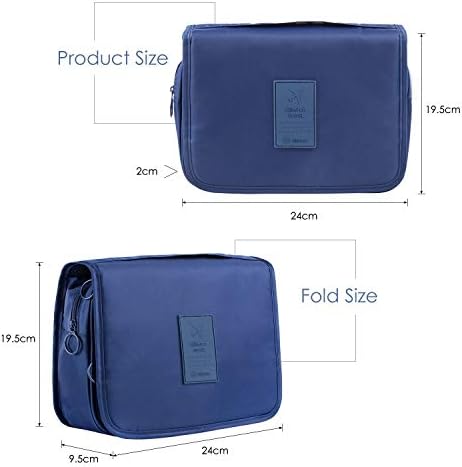 ElifeAcc Hanging Travel Toiletry Bag Folding Bathroom Organizer Portable Cosmetic Wash Bag for Women Girls Navy Blue