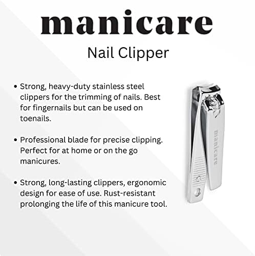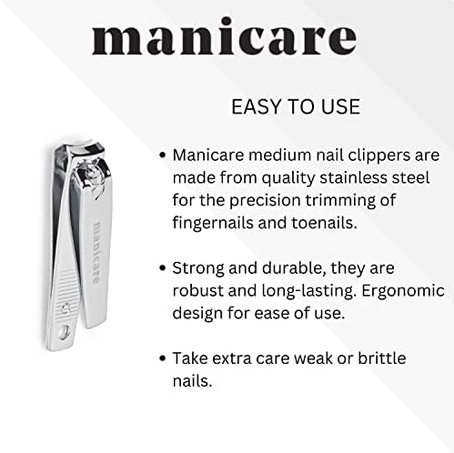 Manicare Nail clipper,Stainless Steel Medium Clipper For Precisie Trimming Of Toenails And Fingernails,Professional Blade,Durable,Ergonomic,Perfect For Handbag Or Travel For Manicures And Pedicures