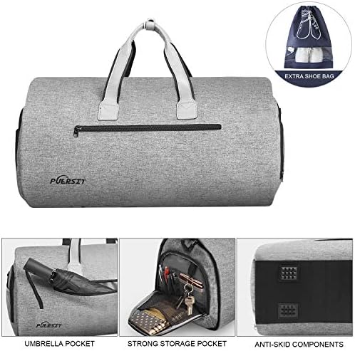 Puersit Garment Bag Large Duffel Bag Carry on Suit Travel Bag for Men Women Travel & Sports, 2 in 1 Hanging Suitcase Suit Business Travel Bag with Shoe Bag (Grey)
