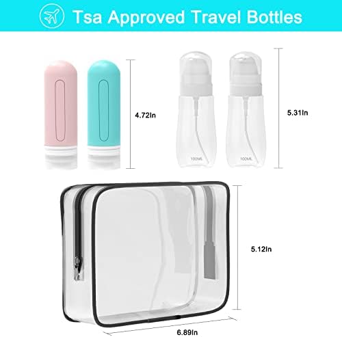 SLIJAR 4PC Travel Bottle, Portable Travel Containers Set Travel Bottles for Toiletries 100ml LeakProof Refillable Squeezable Travel Accessories Essentials with Toiletry Bag