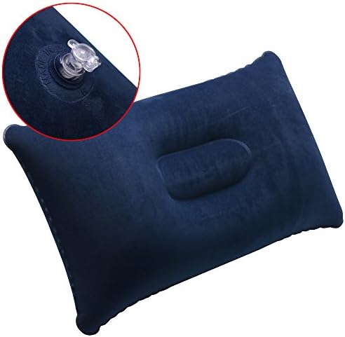 TRIXES Navy Blue Soft Inflatable Camping Travel Pillow Cushion – Compact Air Blow Up Pillow for Beach Sun Lounger Sunbathing Backpacking Hiking – Accessory for Travelling