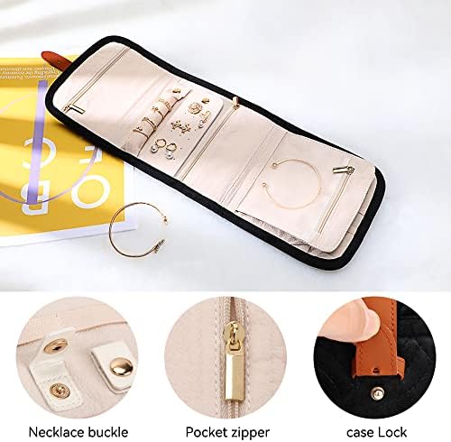 Voova Travel Jewellery Organiser Roll Foldable Jewelry Case for Women Girl, Portable Jewellery Storage Bag for travelling, Small jewlerrying Pouch for Rings Necklaces Earrings Bracelets, Black
